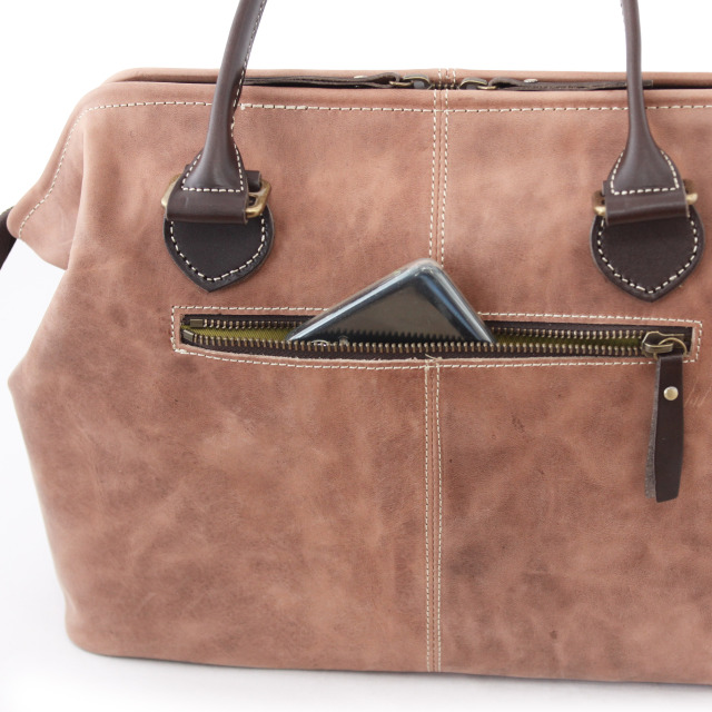 ファスナーを開くと上部がパカっと開くので中のものが見わたせ、 |