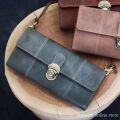 他にはない存在感を放つ、クラシカルな差し込み錠デザイン。 どこか懐かしさを感じるアンティーク調の金具と、 マットな質感のレザーが織りなす上品な佇まいが魅力です。 手に取るたびに革の表情が深まり、自分だけの味わいへと育っていきます。